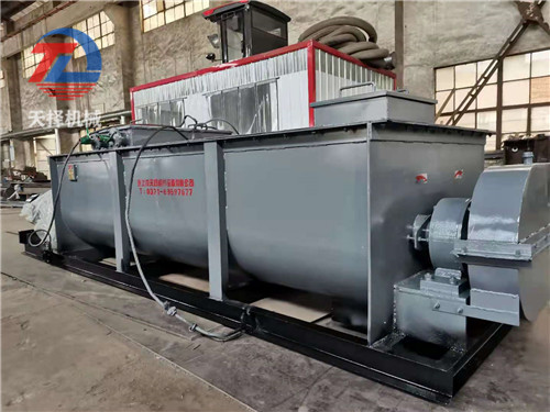 双轴加湿搅拌机的工作原理:当干粉材料由给料机定量通过进料口均匀进入槽时,动力传动机械驱动装有多组叶片的螺旋主轴旋转,通过啮合传动齿轮驱动被动螺旋轴与主轴等速相对旋转,使物料搅拌并推入槽加湿段。物料推入加湿段后,加湿器自动喷湿物料,然后充分搅拌槽后的搅拌段。当物料达到可控湿度时,
